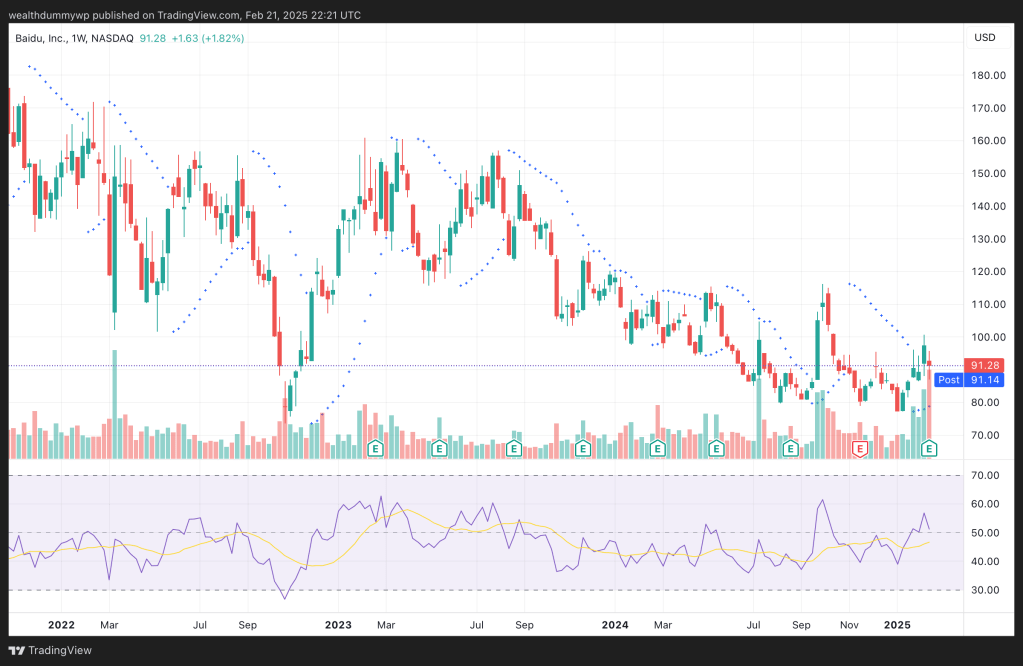 Currently, I have purchased shares of the company just once. I like to build my positions over time. As I have mentioned in my previous posts, I`m terrible at timing the market. I`m more “time in the market” kind of guy. Now, back to my purchase. I bought shares of Baidu on 6th of January 2025. The price of my transaction was $85.39. The current price at the time of writing is about $91.28. I am now sitting at almost 7% unrealized gain. On 14th of February the stock price reached about $100. But I didn’t sell. Maybe I should have sold, since 17% return in one month is not a bad result. Anyway, I decided to hold since I believe that there is a potential in the position.