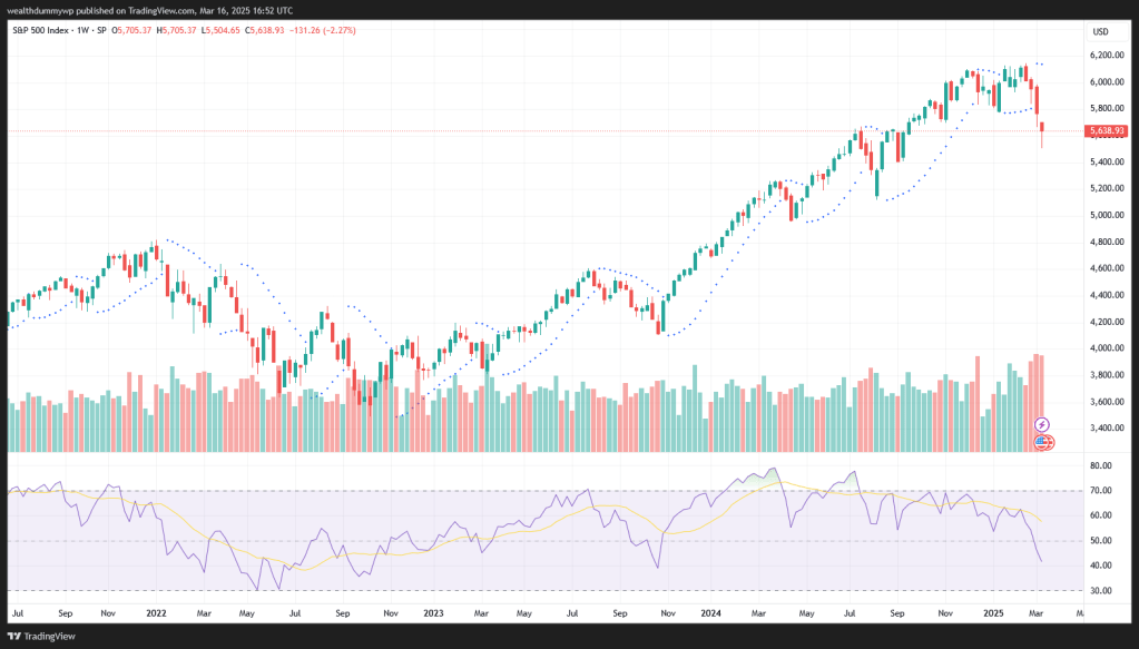 The above is the weekly chart of the S&P 500. To me it seems that the market has reached a decent level of support around $5 630. In terms of weekly RSI we still haven`t visited the oversold zone.