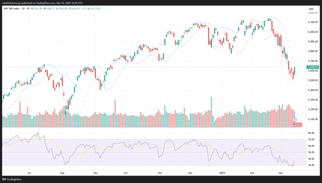 Let`s check the daily chart. We can see that on Thursday the daily RSI was in a oversold zone and now is going back up. There was some recovery on Friday. A good sign is that on Friday the market closed with a good green bar. It might be indicating some market relief.