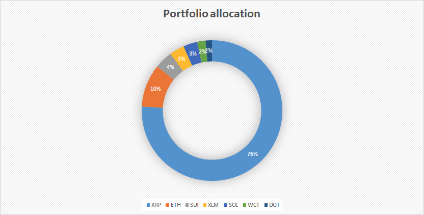 We have already discussed the three largest positions in my portfolio. I have few others. Their share in my holdings is around 3% or less, so we won`t be discussing them in details. The other coins worthy of mentioning are Stellar (XLM), Solana (SOL), WalletConnect (WCT) and Polkadot (DOT). The rest are too risky bets, with a lot of uncertainty around them.